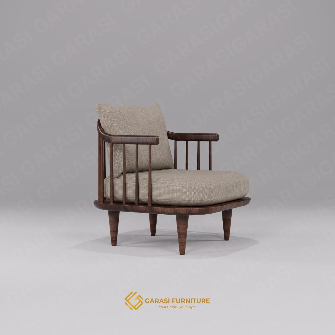 Ciptakan sudut relaksasi yang sempurna dengan Nara Lounge Chair dari Garasi Furniture. Menggabungkan estetika Japandi (Japanese-Scandinavian) yang tenang dengan kehangatan material alami, kursi ini dirancang khusus untuk Anda yang menginginkan kemewahan sederhana namun tetap homie. Balutan warna Coffee Brown yang elegan menjadikannya centerpiece yang memikat di ruang tamu, ruang keluarga, atau area semi-outdoor Anda.