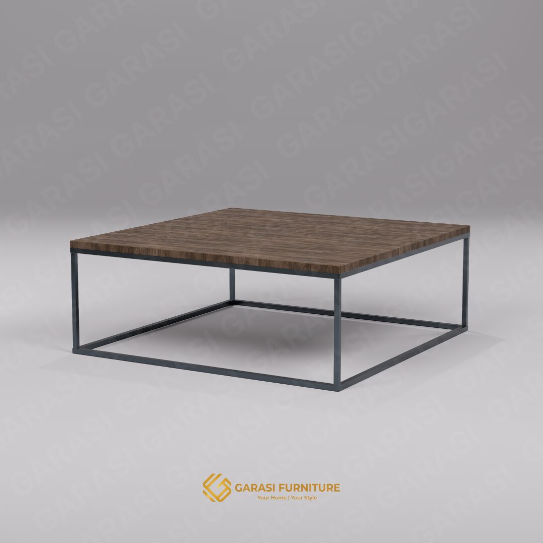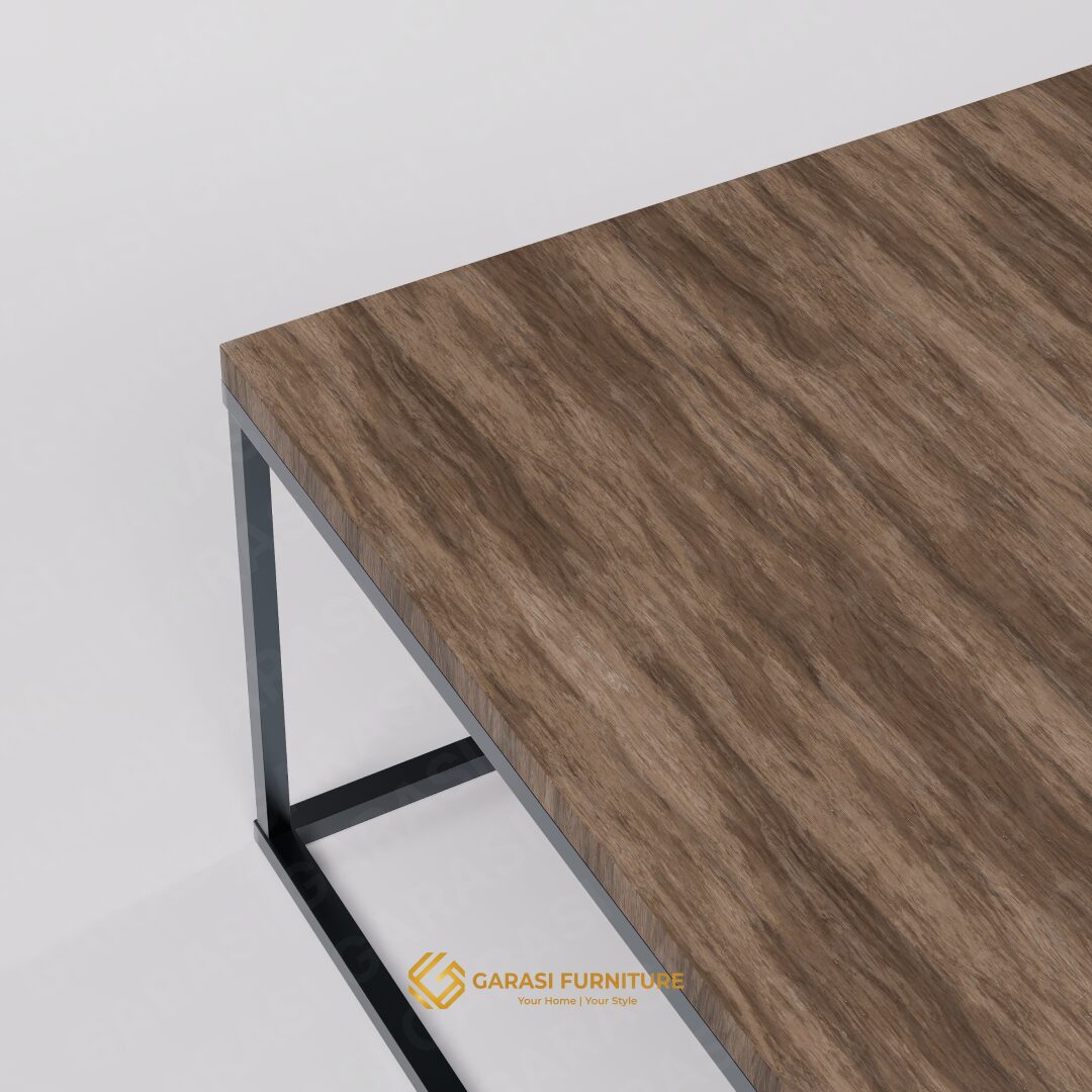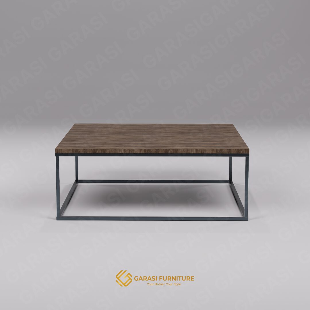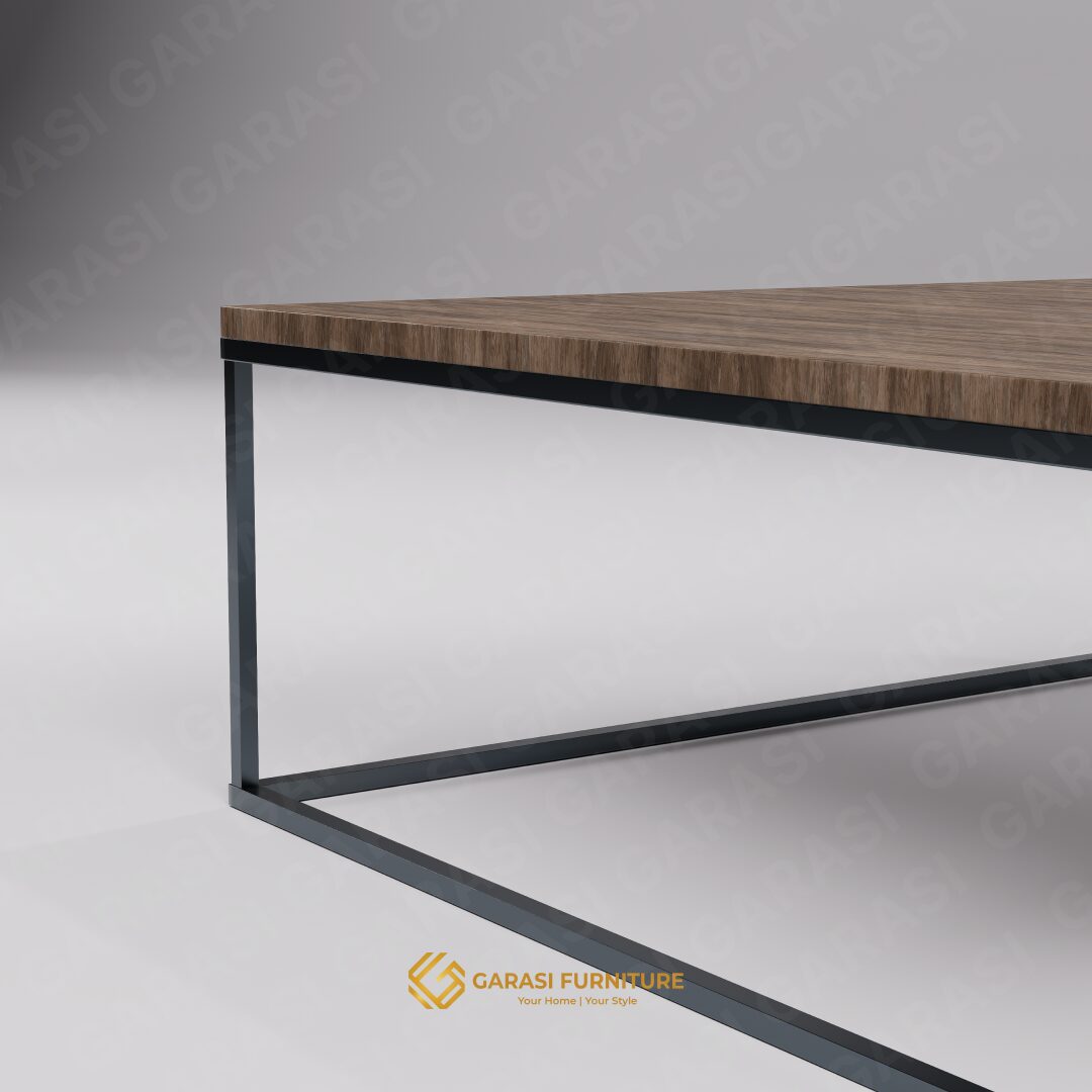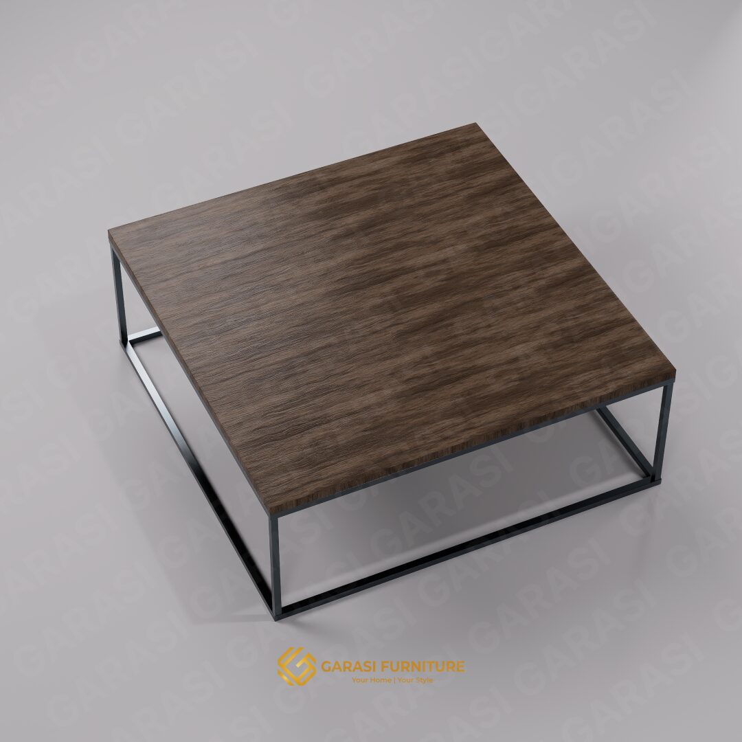 • Estetika Geometris: Arca Coffee Table menampilkan bentuk persegi yang simetris dan tegas. Perpaduan antara elemen kayu natural di bagian atas dan kerangka besi hitam di bagian bawah menciptakan kontras visual yang menarik, memberikan kesan ruangan yang lebih edgy dan kekinian.