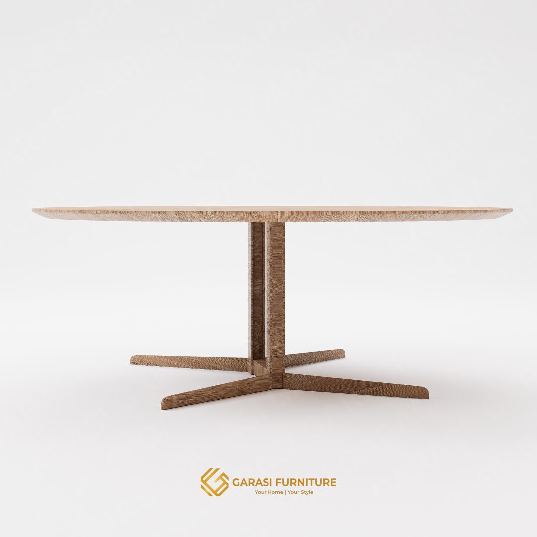 Handcrafted Perfection: Dikerjakan langsung oleh tangan-tangan terampil pengrajin Garasi Furniture Jepara. Proses pengamplasan dan finishing dilakukan berulang kali untuk memunculkan keindahan urat kayu jati secara maksimal.