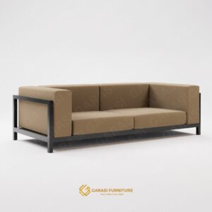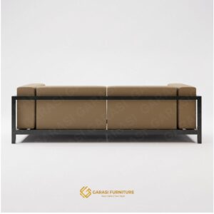 Estetika Exposed Frame: Lany Sofa menampilkan desain “sangkar” yang unik dengan rangka besi kotak yang membingkai sisi samping dan belakang sofa. Desain ini memberikan tampilan visual yang ringan, terbuka, dan sangat clean, cocok untuk hunian berkonsep Urban Loft, Minimalis, atau Industrial.