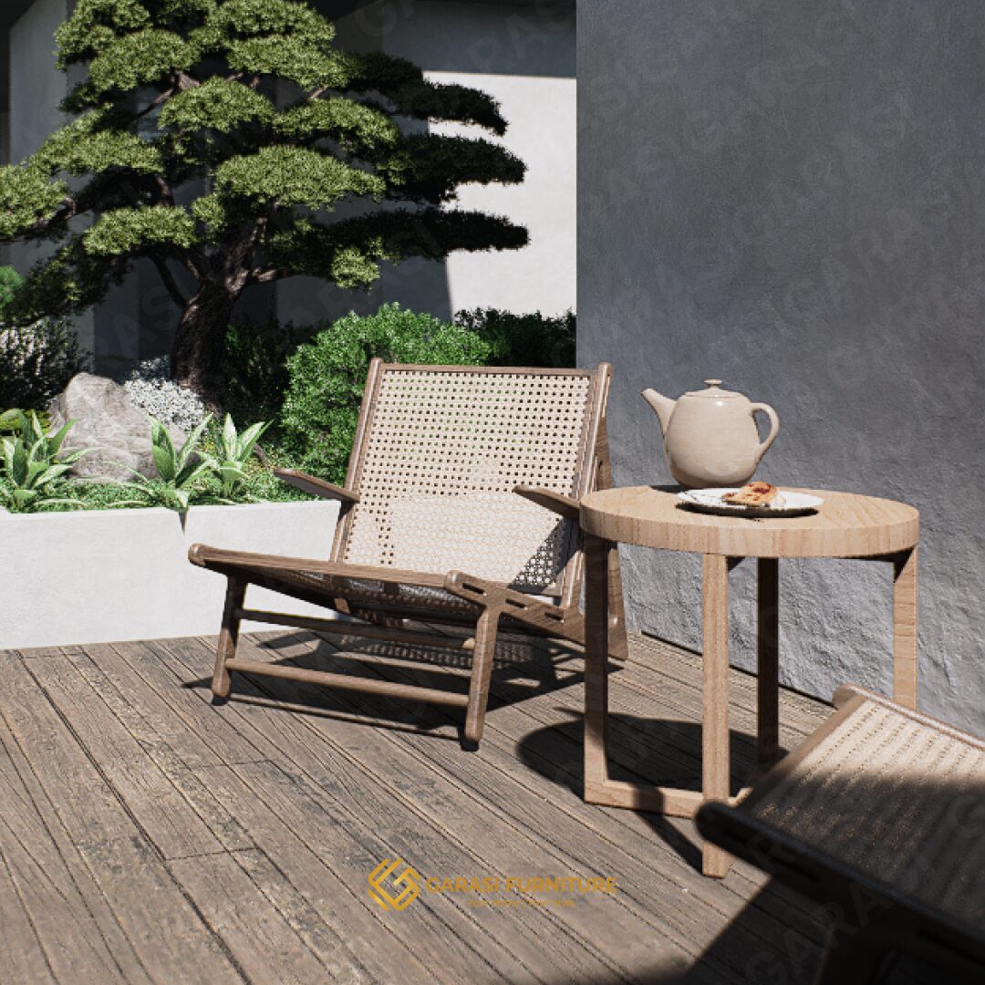 Handcrafted Mastery: Dikerjakan oleh tangan-tangan terampil pengrajin Garasi Furniture. Setiap sambungan kayu dikerjakan dengan presisi, dan anyaman rotan ditarik dengan kencang dan rapi untuk memastikan daya tahan dan keindahan visual.